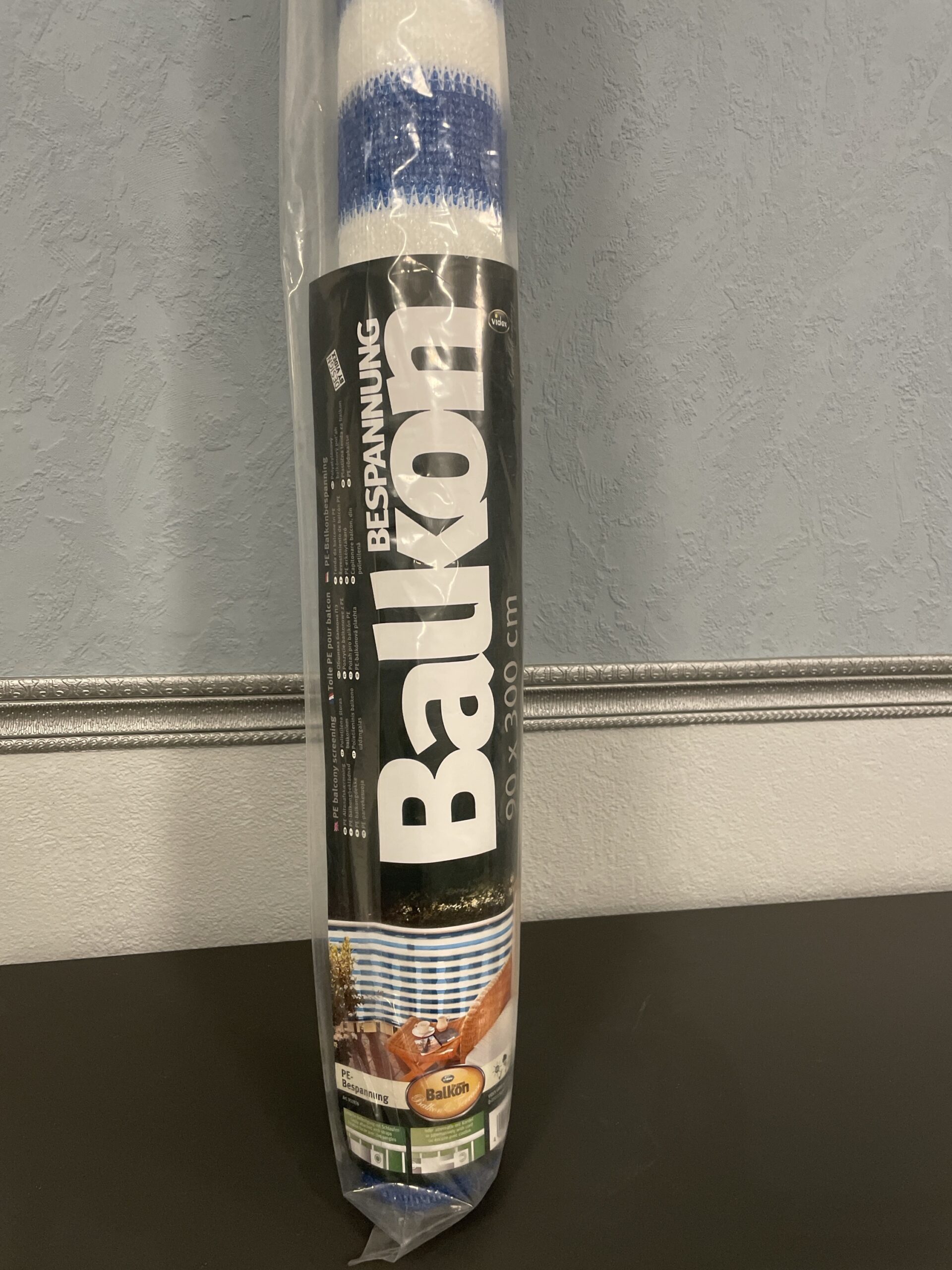 Vand og vindtætte le til din balkon. Måler 300 x 90 cm. Farven er blåhvid.